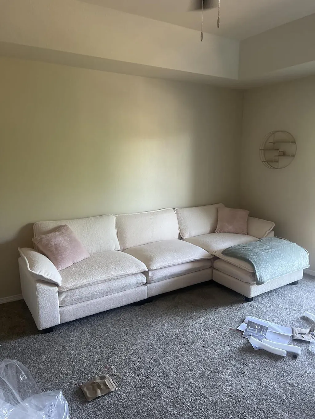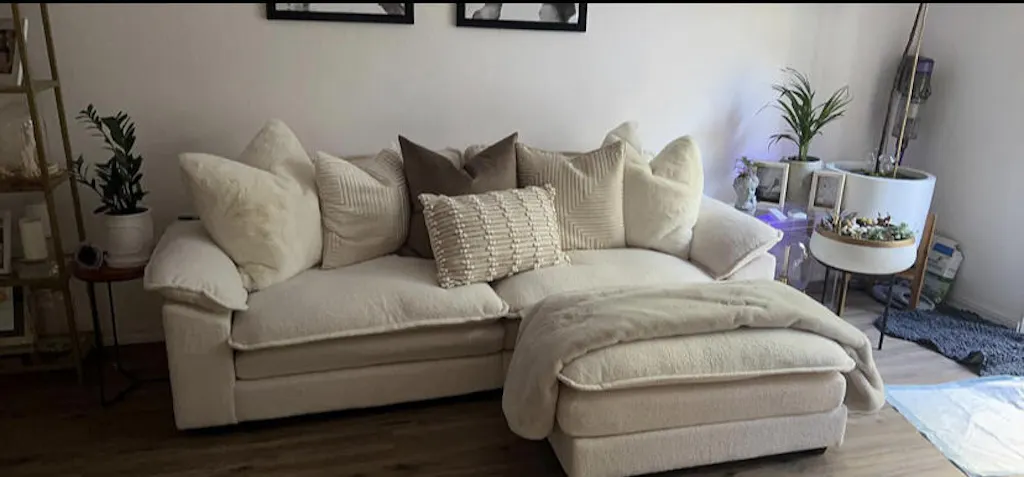 This stylish sofa is perfect for relaxing after a long day, with its super soft double cushions that feel like a cozy cloud. The sleek white design adds a modern touch to any space, and the durable upholstery makes cleaning a breeze. You'll have plenty of room for family and friends on this spacious sofa, and the sturdy frame ensures it lasts for a long time. Easy to assemble and versatile in design, the Dream Mellow™ sofa brings comfort and style to your home without any fuss.