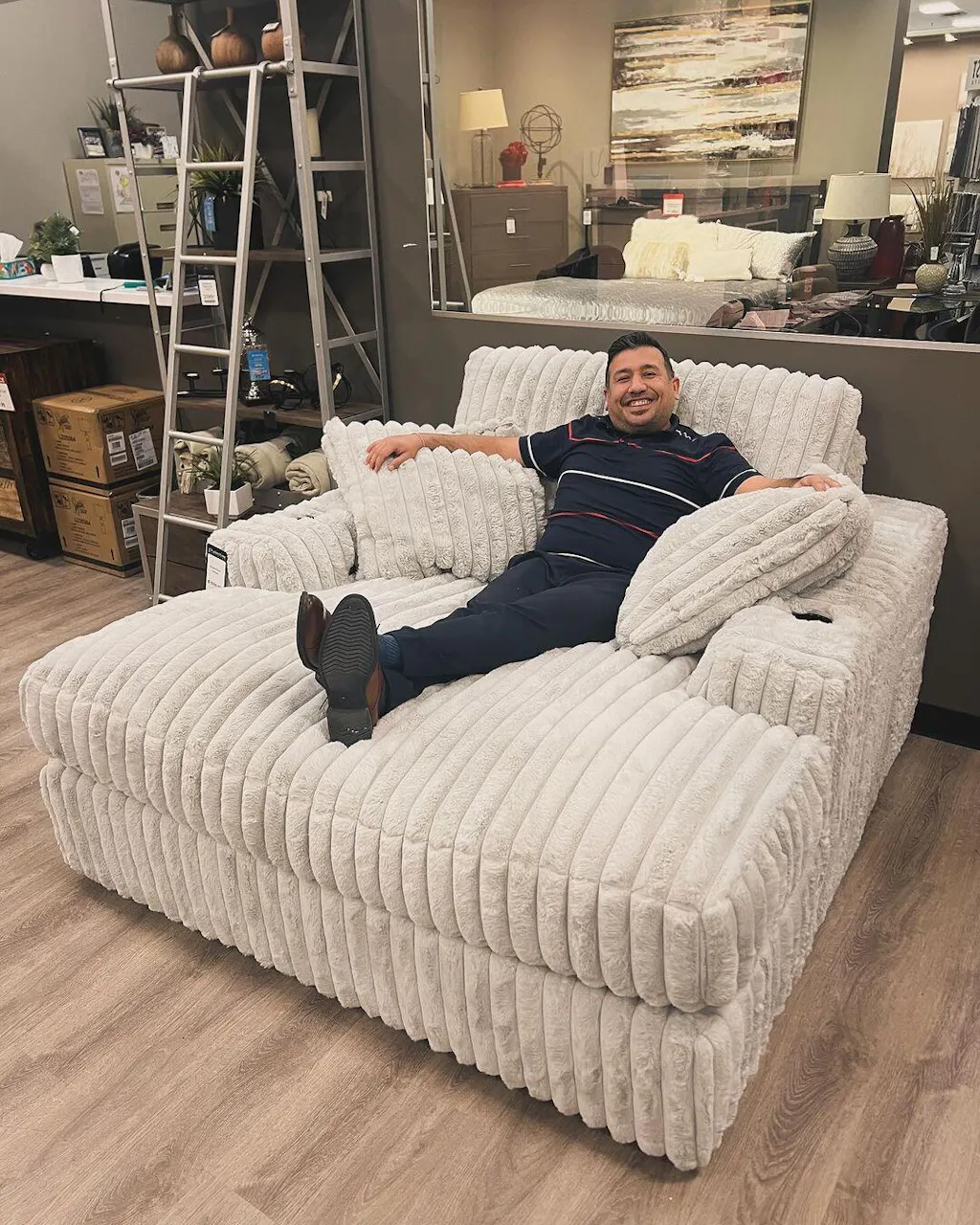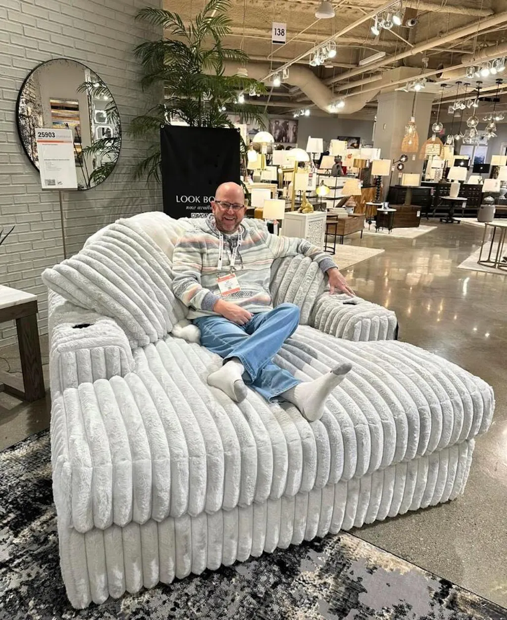 Don’t want to sacrifice standout style for majorly cozy seating? The Stupendous oversized chaise pairs bold character with sink-in comfort. Its retro-cool jumbo cord over feather-blend cushions creates a luxuriously soft lounging experience. Cup holders and USB charging help to keep essentials close. With this chaise, you can balance everyday relaxation and your unique eye for design.